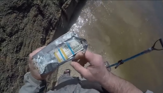 ▼有人去海灘尋寶,結果真的發現了一疊包好的鈔票。