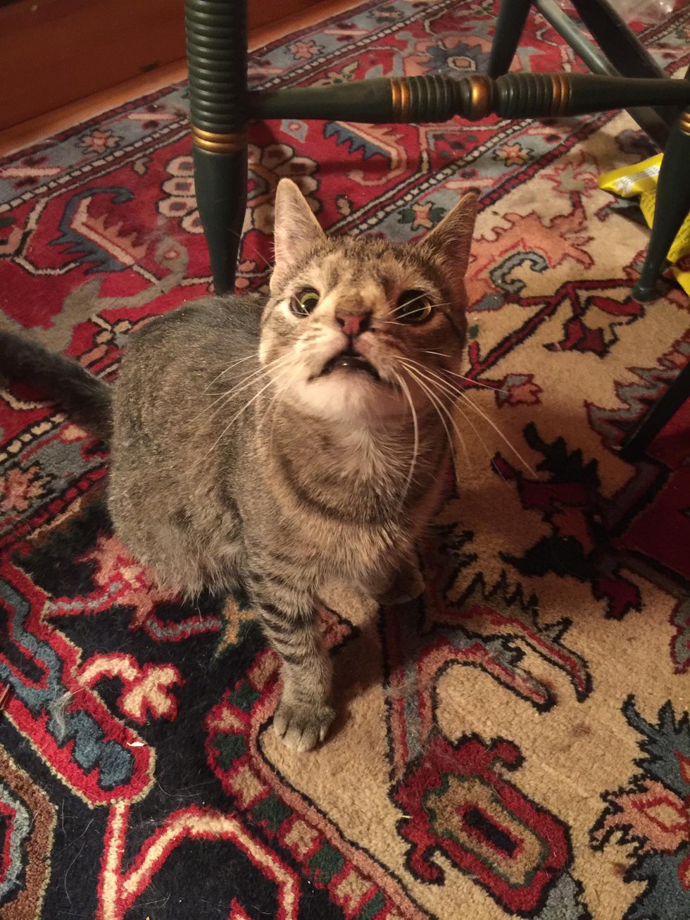2017年09月28日去年時,有人在一間中餐廳外的垃圾桶內發現了一隻流浪貓。牠剛剛出生不久,看起來怪怪的,不僅眼睛不協調,還是個塌鼻子,與其他的貓咪很不一樣。