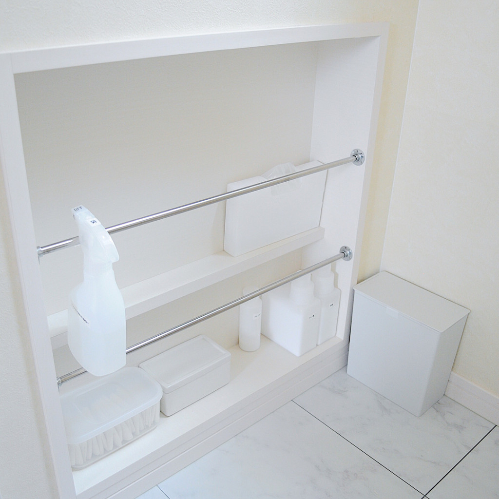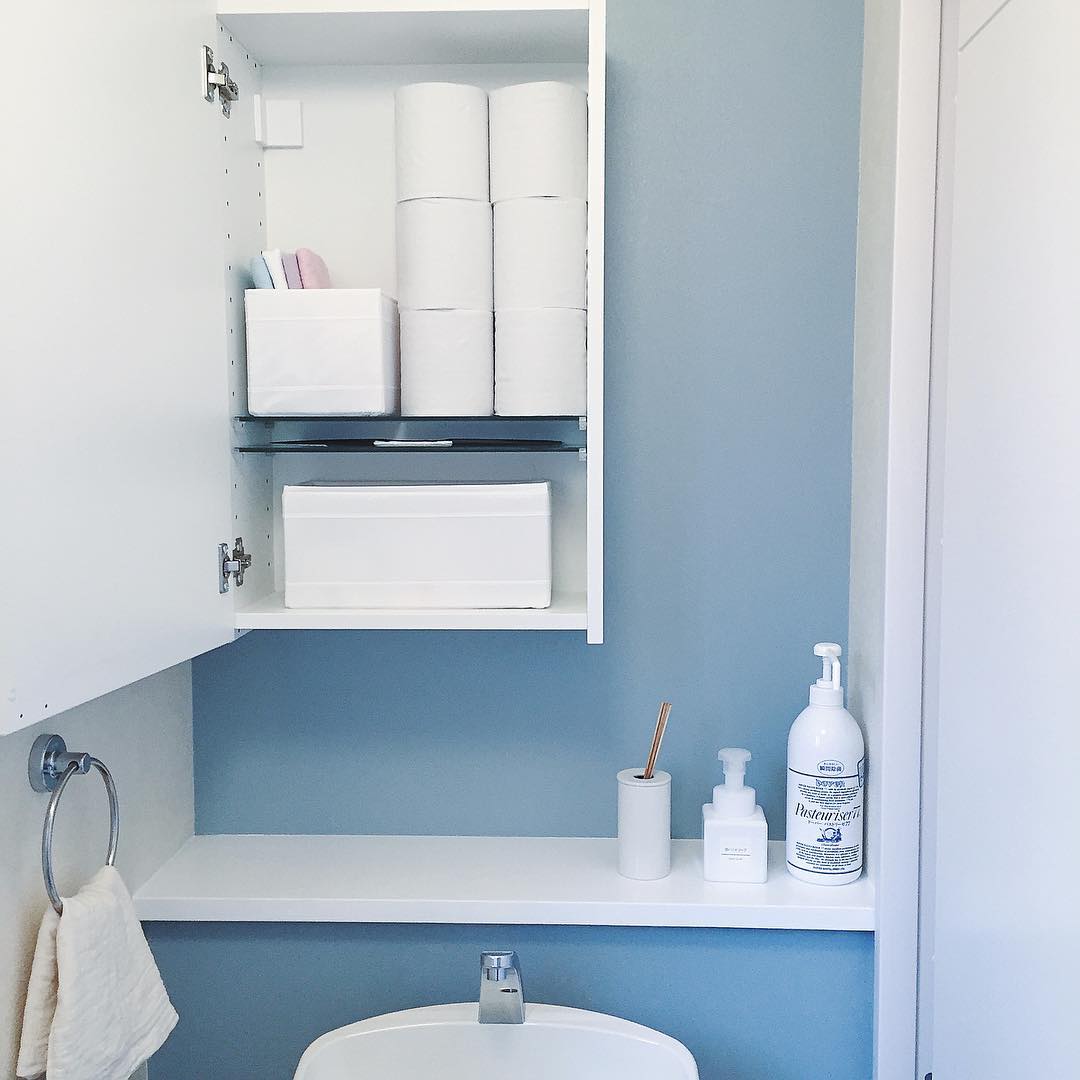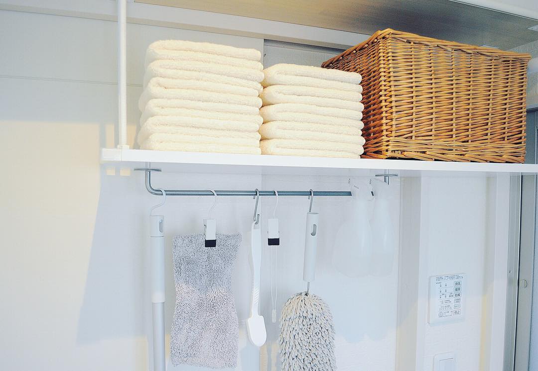 ▼打掃用品就放在浴室的櫥櫃裡,也是分門別類存放,需要的時候很輕鬆就能拿到。