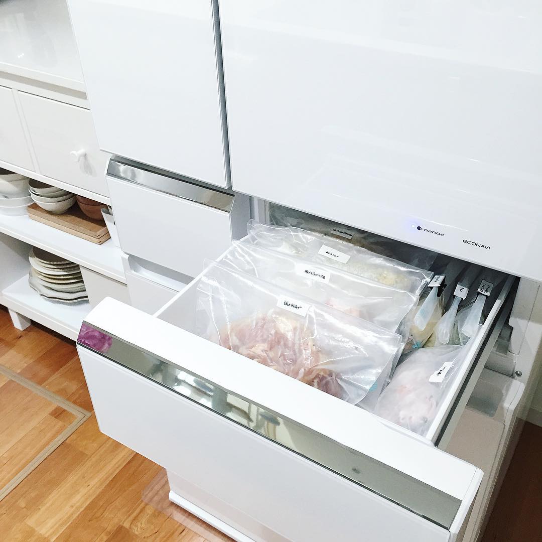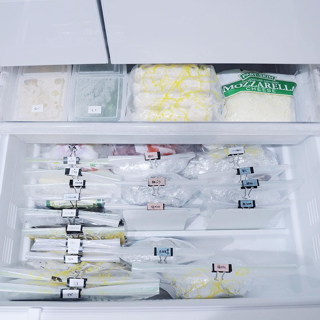 ▼冰箱內部非常整齊,每一樣東西都用保鮮袋、保險盒盛裝,上面還貼著標籤。