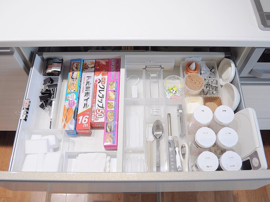 ▼餐具、調味料等等都放在抽屜裡,因為有小盒子分隔,一點也不雜亂。