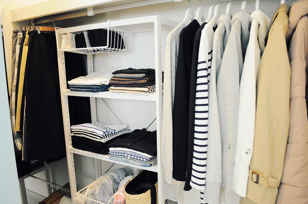 ▼衣帽間整整齊齊,有些掛起來,有些擺在架子上,還有一些放在盒子裡。