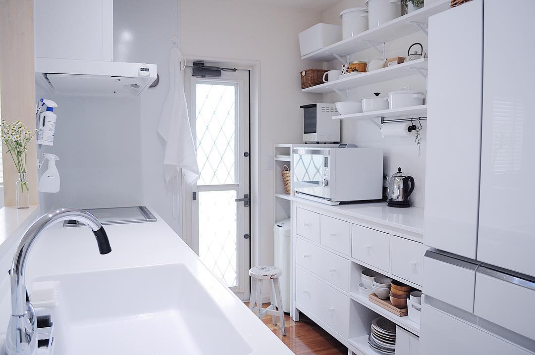 ▼先來看一下他們的廚房,白色的檯面、櫥櫃很怕沾染油污,但她擦得很乾淨,就像從來沒用過一樣。