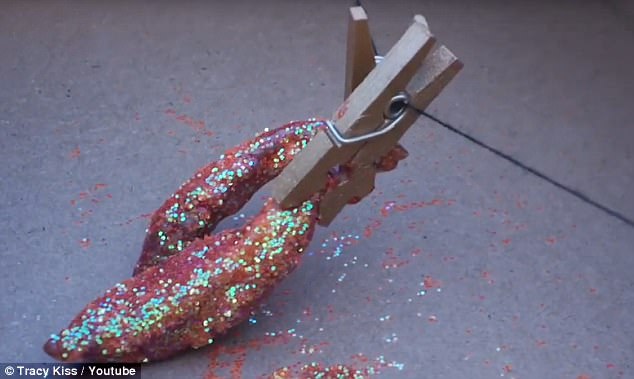 ▼她與9歲的女兒一起用亮光粉灑在陰唇上,之後用吹風機吹乾。
