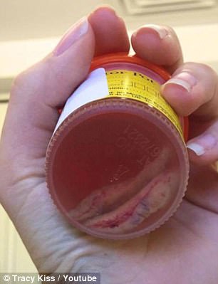 ▼她將切下的陰唇泡在防腐液的罐子裡,作為她的收藏品。