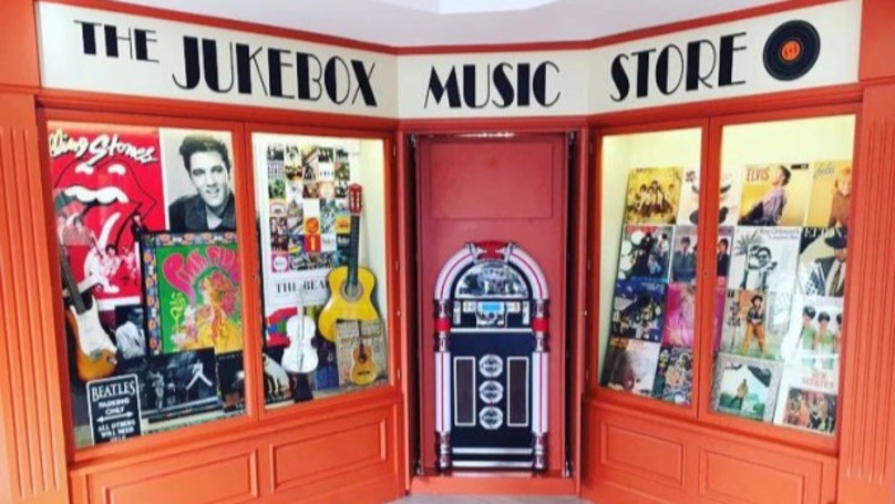 ▼失智症病人一般年齡都很大,失智護理之家打造了懷舊的街景,還有復古的商店、自動點唱機等等,患者生活在這裡,就像回到了最熟悉的年代。
