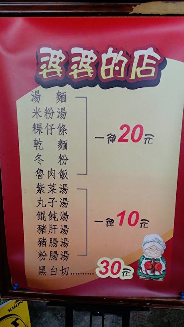 ▼「婆婆的店」開在虎尾科技大學側門的馬路旁,由85歲的婆婆經營,店內的飯麵類一律20元就能吃飽,10元就能點一碗湯,價格在這年代簡直佛到不行!