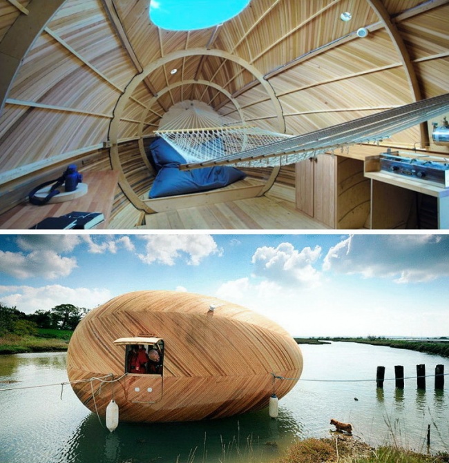 ▼10.蛋形水上住宅:這是建築設計師Stephen Turner與SPUD Group、PAD工作室合作設計的生態建築。它只有6米長,2.8米寬,內部設施齊全。