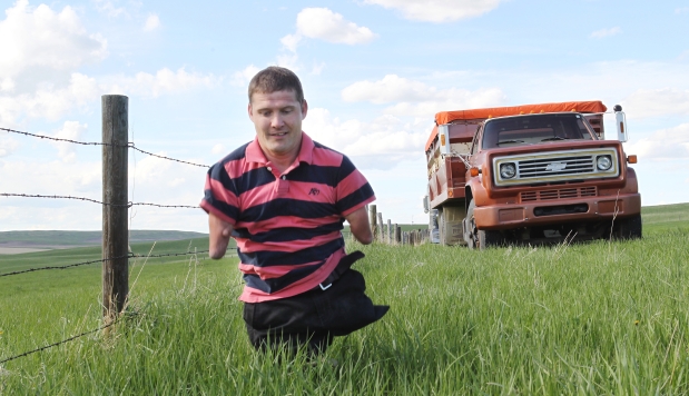▼克里斯的夢想是成為一位農夫,他也完成了自己的夢想。克里斯說他無法合法開車,也不能操作電鋸或游泳,但他幾乎可以做到大部分正常人都能做到的事,「為了完成日常的工作,我會比一般人花超過400%的精力,對於一個人用一隻腳跳躍的人來說,這是很好的小小鍛鍊。」他樂觀自嘲說。