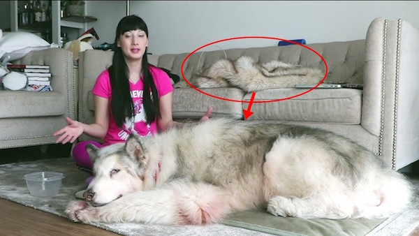 ▼不過就在她最近上傳的影片中,網友卻發現有一個地方不太對勁,那就是沙發上擺著跟丹尼顏色一樣的皮草!因此許多人懷疑,這個皮草是女飼主殺了愛犬製成的…