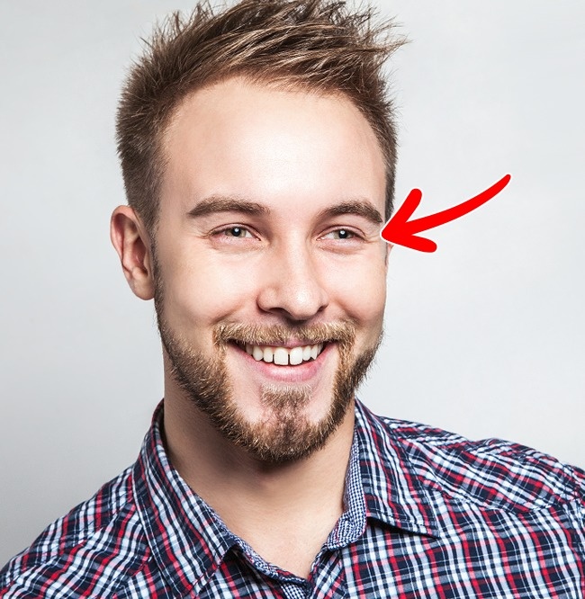 發自內心高興,從而露出笑容的話,他的眼睛應該也在笑,眼睛會變小,周圍會有笑紋。