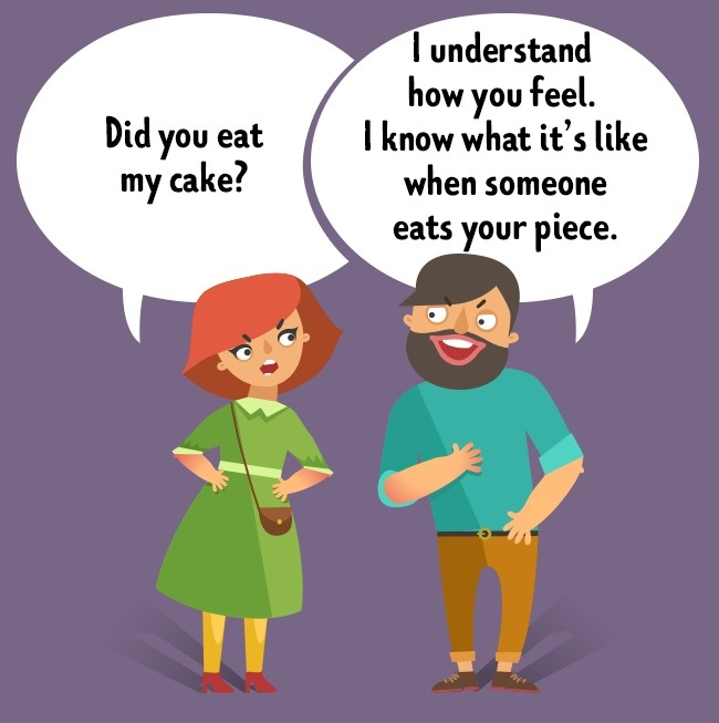 「你吃了我的蛋糕嗎?」「我理解你的感受,知道那種蛋糕被人吃掉的感覺。」