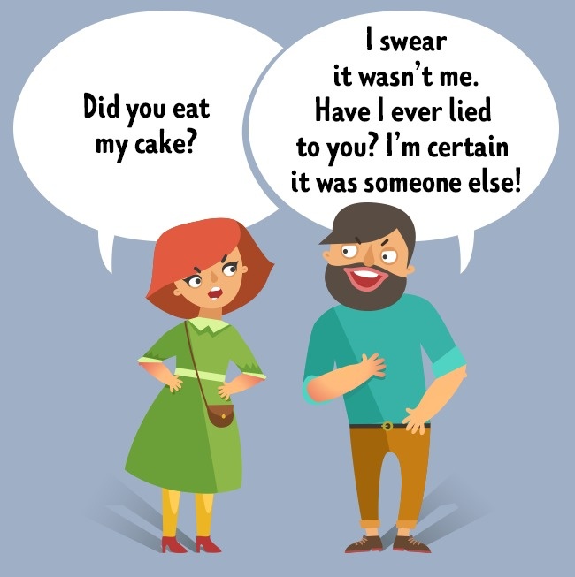 「你吃了我的蛋糕嗎?」「我發誓不是我。我騙過你嗎?肯定是別人幹的!」