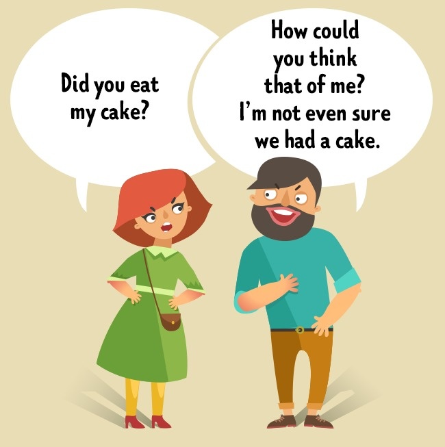 「你吃了我的蛋糕嗎?」「蛋糕?什麼蛋糕?你為什麼問我?」