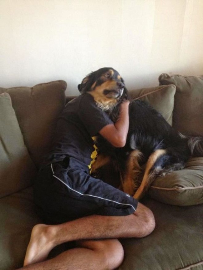 ▼這隻狗狗的表情好有戲,跟背後的主人很搭啊。