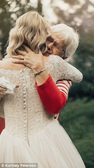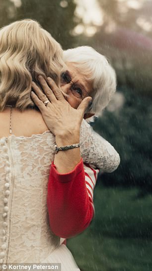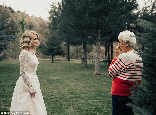 ▼Jordyn的阿嬤已經74歲,她不知道孫女為自己準備了這樣一個驚喜。看到孫女穿著自己的婚紗出現的一刻,她忍不住流下了眼淚。