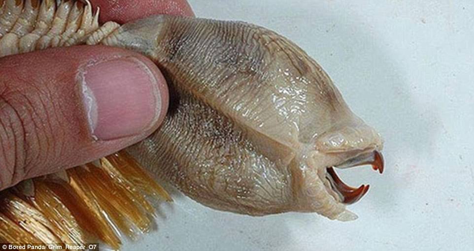 ▼這種蠕蟲叫做「巨型海鱗蟲」,牠的下頜很有力,是強大的捕食者。