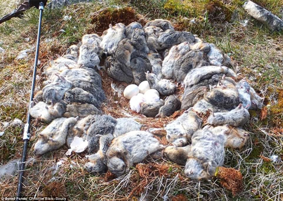 ▼一窩70多隻旅鼠全被一隻貓頭鷹殺死了。