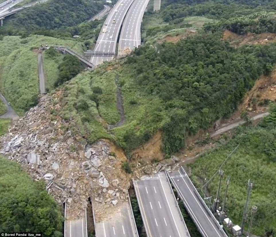 ▼山崩後的公路。