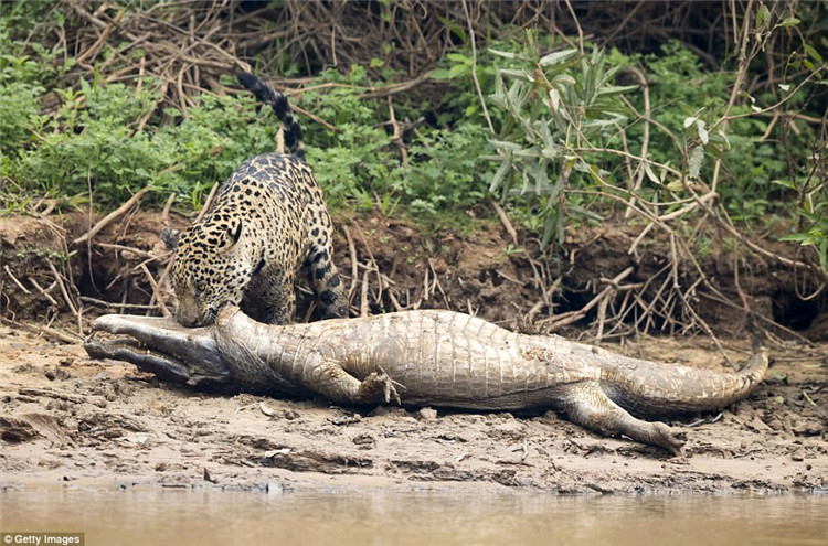 ▼凱門鄂已經完全失去招架力,20分鐘後,凱門鄂被美洲虎兇殘的咬死了。
