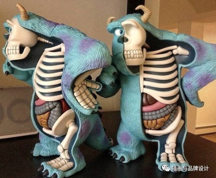 ▼​他沒有按照真實的解剖圖創作,只是加入了一些簡單的解剖元素,還在色彩和造型上費了心思,讓它們看起來更可愛。
