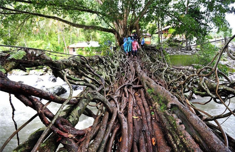 ▼印度尼西亞一座用樹根做成的橋
