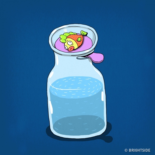 ▼把魚變進瓶子裡