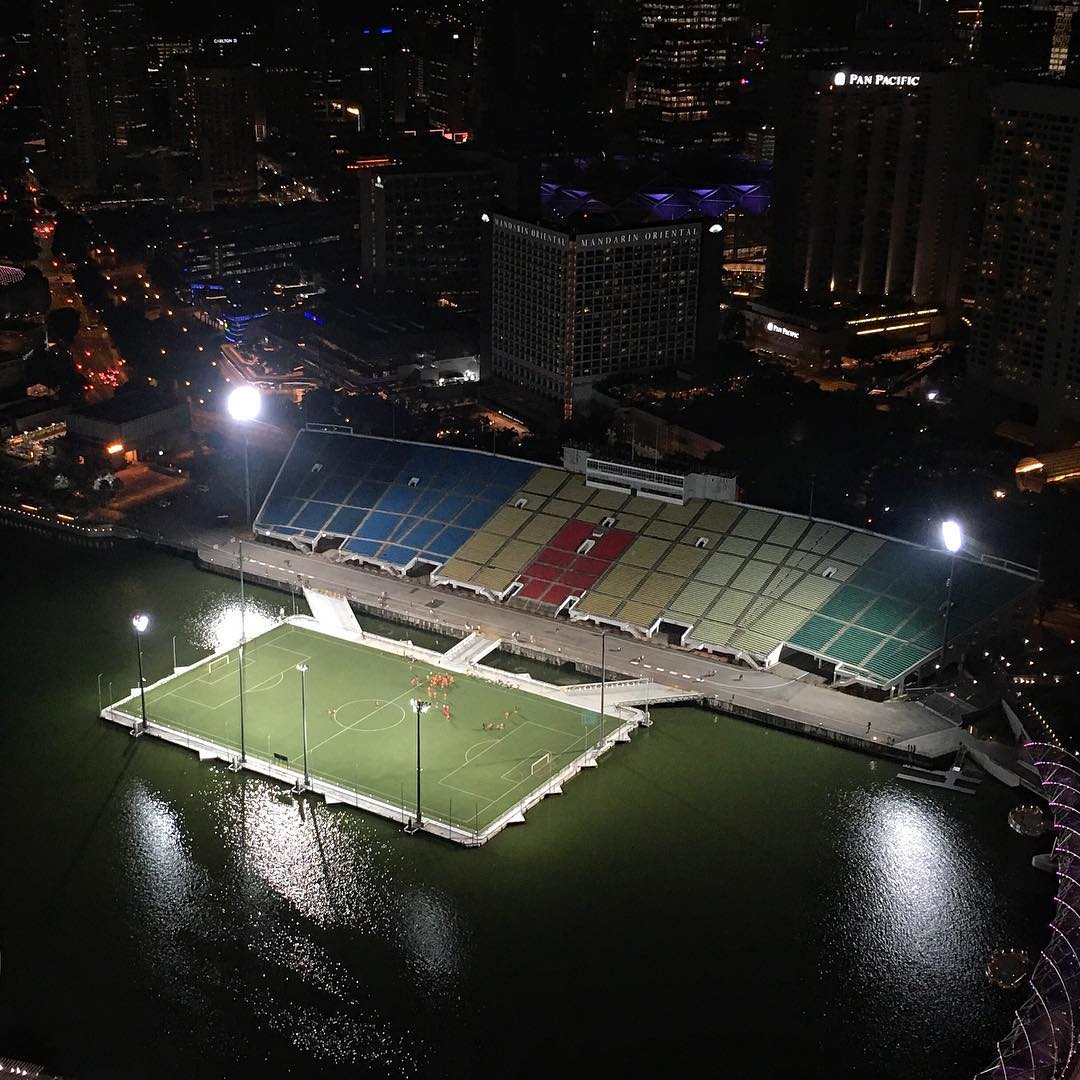 ▼這裡沒有不可能的建築,就像這個在新加坡濱海灣的水上浮動體育館。