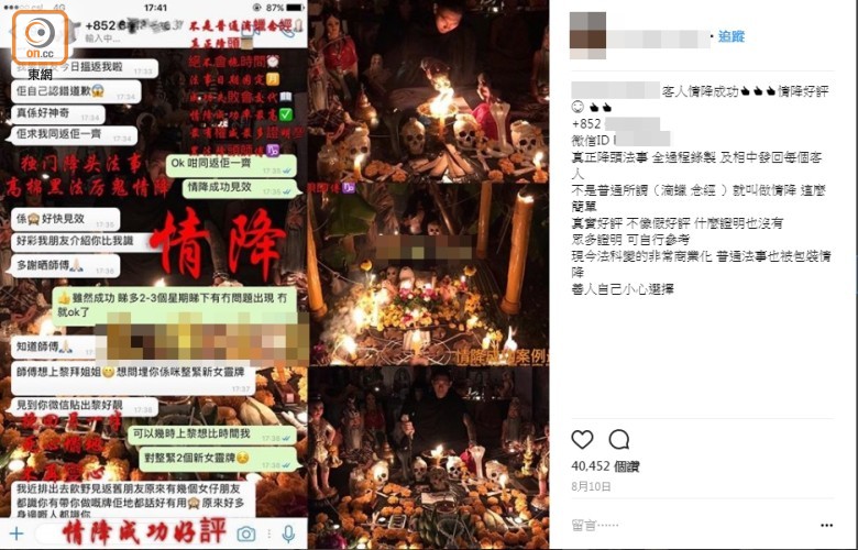 ▼經常往返泰國和香港的凌男,經常在IG上宣傳「愛情降」,以一些「成功例子」來招攬生意,每次都吸引了逾萬人點讚。