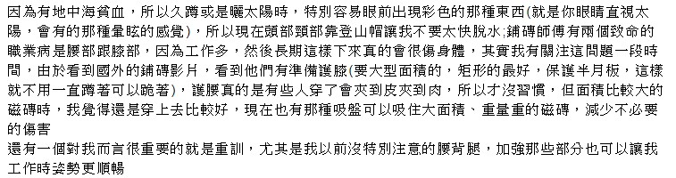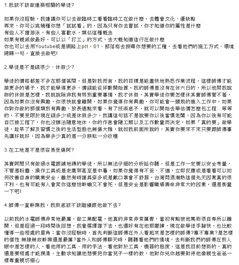▼他也列出了關於鋪地磚學徒的Q&A,讓大家可以更加了解這一行業: