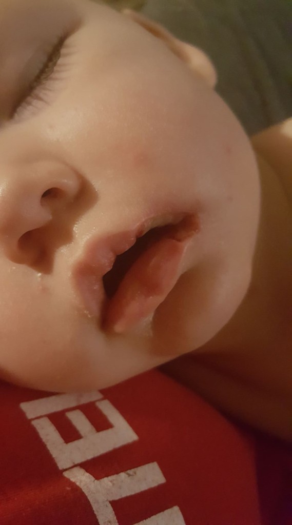 媽媽PO照警告!19個月大女兒「只是舔了手機充電器」,她當晚就無助的看著女兒嘴角潰爛!