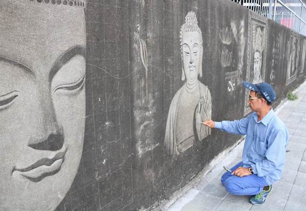 2017年10月14日高雄郵差黃聖人退休後就致力於壁畫創作,其精妙的技術更有著「鳳山唐伯虎」的稱號,不過他在屏東工業區鄰近和生路的一面佛像創作,卻因為未告知主人,恐面臨刷掉的命運,也讓不少網友大為惋惜。