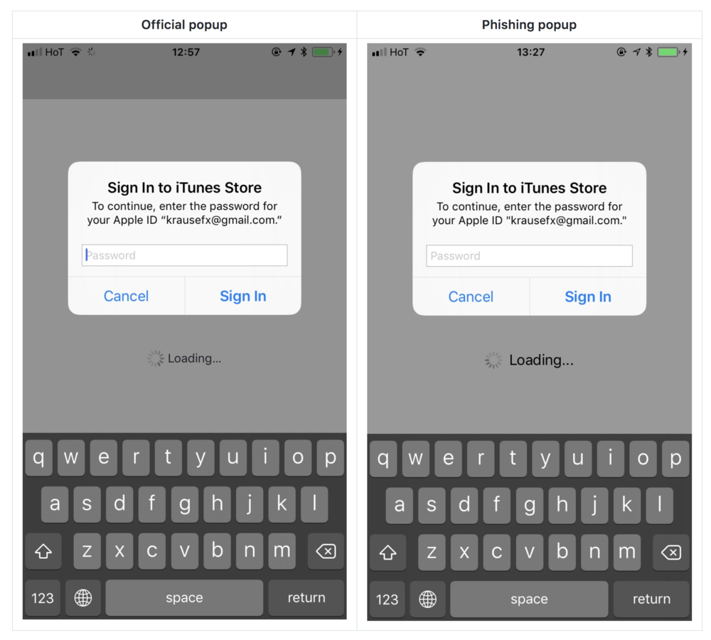 2017年10月15日使用iPhone和iPad的人都見過這個要求填寫Apple ID和密碼的視窗。一般人看到後就會填寫,根本沒想過背後的安全問題。但最近,一名叫做Felix Krause的開發者卻發現了一個漏洞:這樣的視窗任何開發者都能模擬,傻傻填寫的話訊息就泄漏啦。