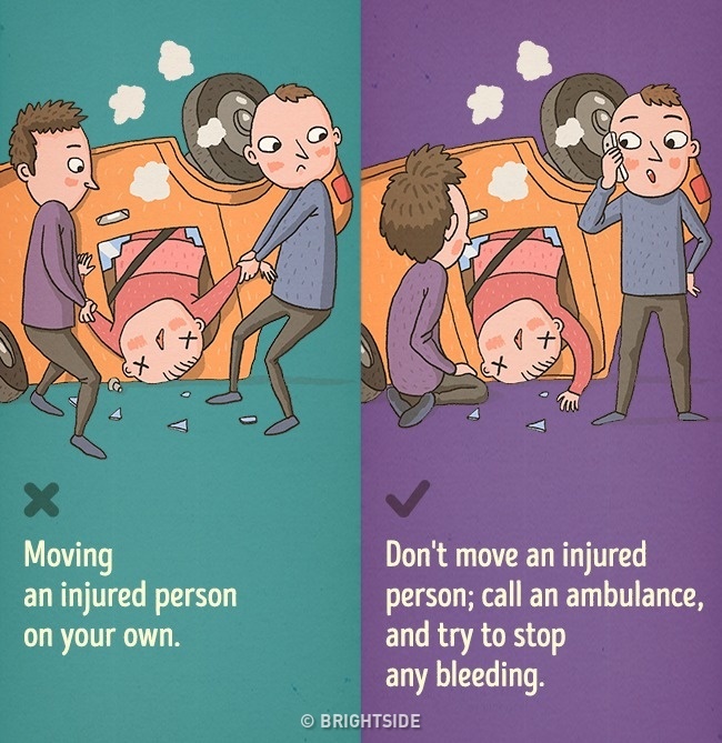 ▼不要隨意移動傷者:發生交通事故後不要移動傷患,或是將傷者拖出車外,除非車子要著火爆炸。想要救人的話,可以叫救護車、關閉車子的電源或引擎、幫忙止血、安撫傷者情緒,讓他們保持冷靜。