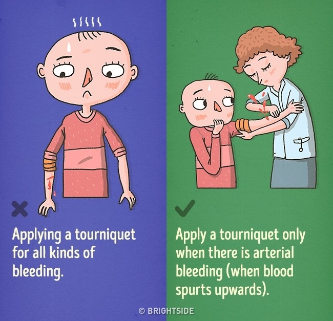 ▼不要看到出血就用止血帶:分辨一下血液的顏色、流速,如果是一般流血,用止血帶反而會讓情況更嚴重,傷到靜、動脈才適合用止血帶。
