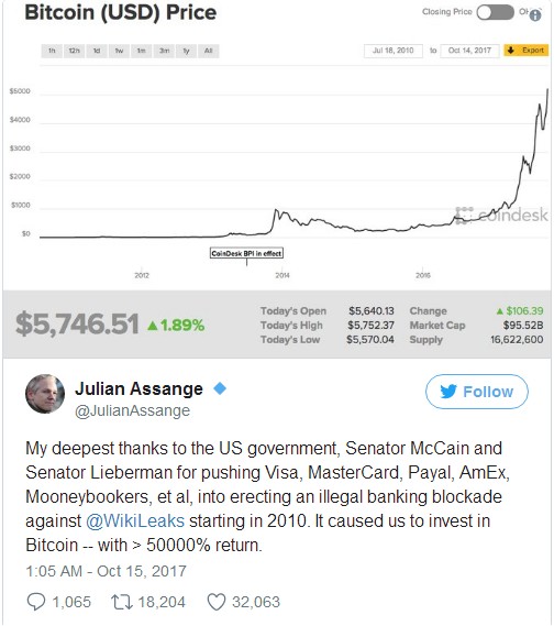 美國政府打壓《維基解密》創辦人卻變成幫他狂賺500倍,投資比特幣賺翻天現在是億萬富翁!