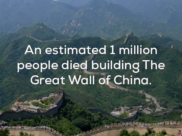 ▼21. 在建造萬里長城的過程中,猜想有一百萬人因此死亡。