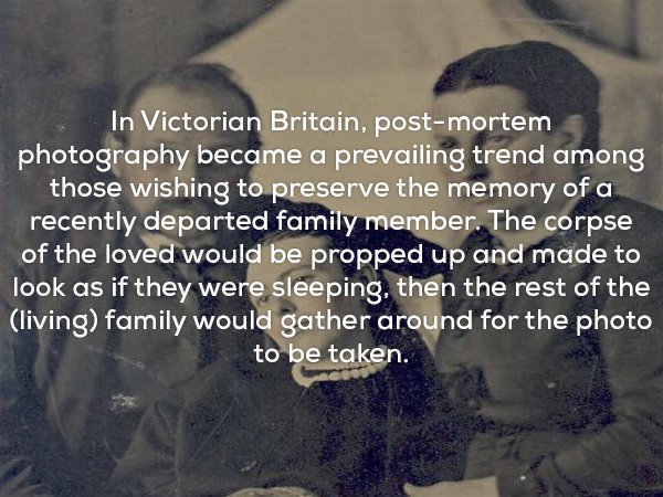 ▼8. 英國維多莉亞時期流行所謂的「死後照片」,為了保存對已逝親人的回憶,屍體會經過化學藥劑處理,並擺成還活著的姿勢,與家人一起合照。
