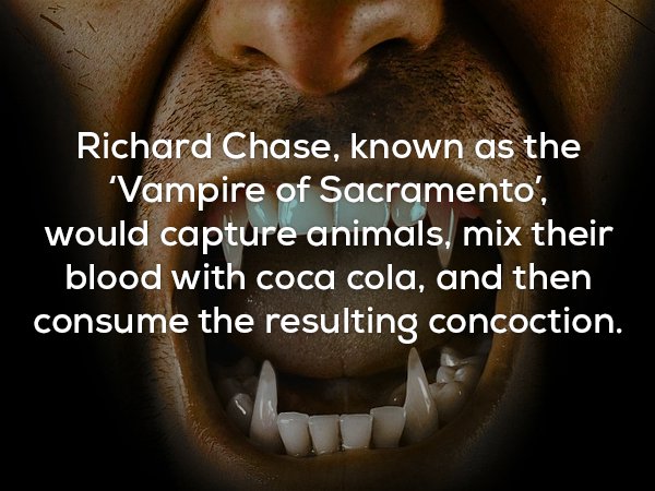 ▼6. 有「吸血鬼殺手」之稱的理查德蔡斯(Richard Chase)會去捕捉動物,把牠們的血液混和可樂喝下肚。
