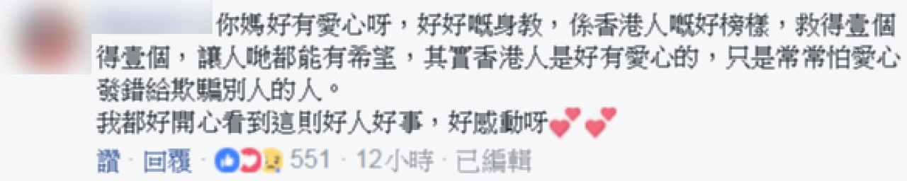 2017年10月19日前幾天,一名香港網友在臉書專頁「名校Secrets」分享了自己的經歷。那天他與媽媽、妹妹一起到速食店吃飯,期間媽媽突然塞給他一百塊紙幣,讓他給鄰座的叔叔買飯吃。原PO不明所以,轉過頭看時才發現,那位叔叔正在吃別人剩下的東西。