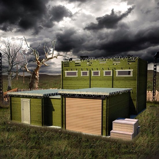 ▼防殭屍安全屋:這是世界上第一間專門用來防範殭屍的木屋。它內部有2間臥室、一個武器庫、一個花園、一個車庫,周圍還環繞著鐵絲網。設計師考慮了殭屍的所有攻擊模式,保證客戶可以在這裡安全住10年。
