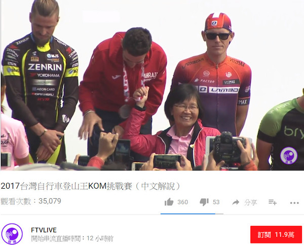 2017年10月21日2017台灣自行車登山王挑戰賽(Taiwan KOM Challenge)在20日登場,共有來自32的國家的592位選手參賽,但在進行自行車登山王頒獎時,觀光局副局長陳淑慧卻拉扯著選手的獎牌不放,導致他低頭領獎。
