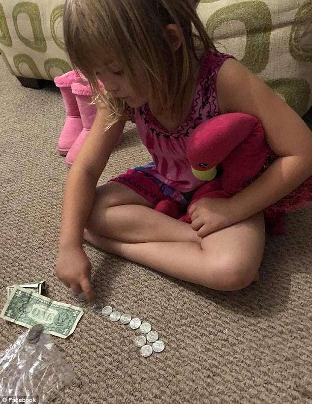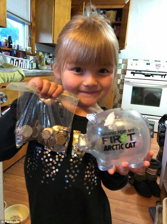 2017年10月21日美國密蘇里州5歲女孩Sunshine Oelfke一直很想要一台雪地車,為此她認認真真存錢,一有零錢就放到自己的小豬撲滿裡。那天阿嬤回家時,發現Sunshine拿出了小豬撲滿裡的錢,正在地上認真數。