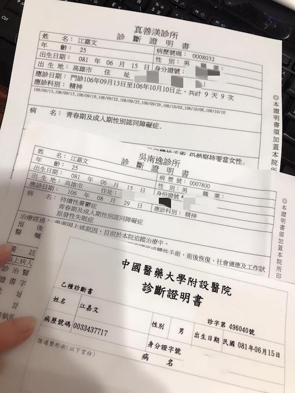 ▼罔腰也透過性別認同等證明文件,順利申請到女性的身分證,並開心在臉書上分享:「終於換好了,全新的身份證!性別女,2開頭。這條路真的不好走,但是我們會堅持下去,離吳太太更近一步了,撒花~」