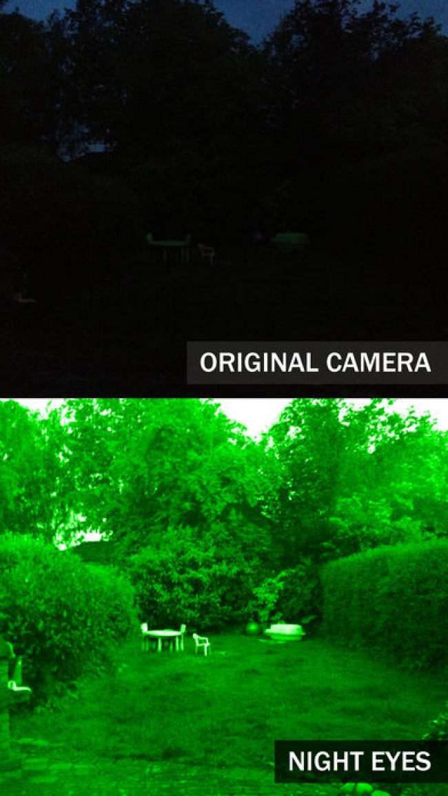 ▼Night Eyes FREE:這是一款夜視APP,安裝後你的手機相機會變成夜視模式,晚上監視很輕鬆。從這裡安裝。