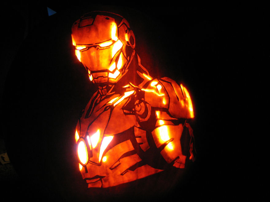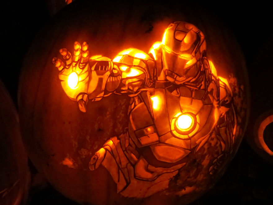 ▼蜘蛛人和鋼鐵人南瓜燈也超酷。