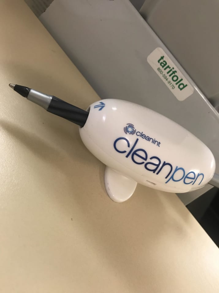 ▼筆放在充滿消毒劑的海綿裡,下面使用的人更放心。