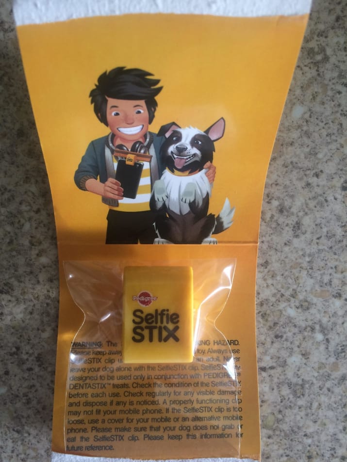 ▼買狗零食送的手機夾,給狗狗拍照時可以吸引牠的注意,讓牠看鏡頭。