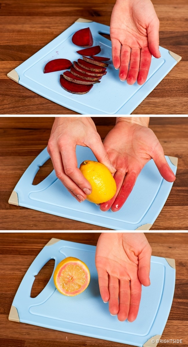 ▼用檸檬汁清潔手指:手指上沾染漿果汁的話,用肥皂清潔只會讓顏色暈染開來,切一片鮮檸檬擦拭,很快就能變乾淨。