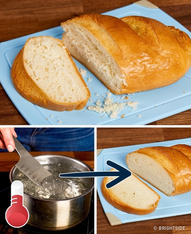 ▼將刀子在沸水中浸一下,再拿出來切麵包:這樣做的話麵包不會鬆散、掉渣。